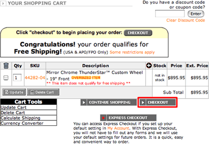 ペイパルの登録が済んだら、ショッピングカートのCHECKOUTボタンを押して注文へ。