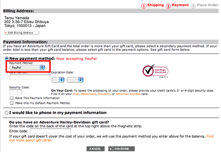 次に支払方法を選択。Payment Method:支払方法はPayPalを選択。