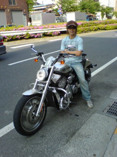 点検してる間、試乗用のV-RODを借してもらった。始めて乗るハーレーの水冷エンジンだったけどすげー乗りやすい。エンジン音はまったくハーレーじゃな いけど加速がスムーズ。っていうより日本車に近い感覚だね。身長の足りない俺は初のフォアコンで結構大変な思いをしたけどね。